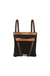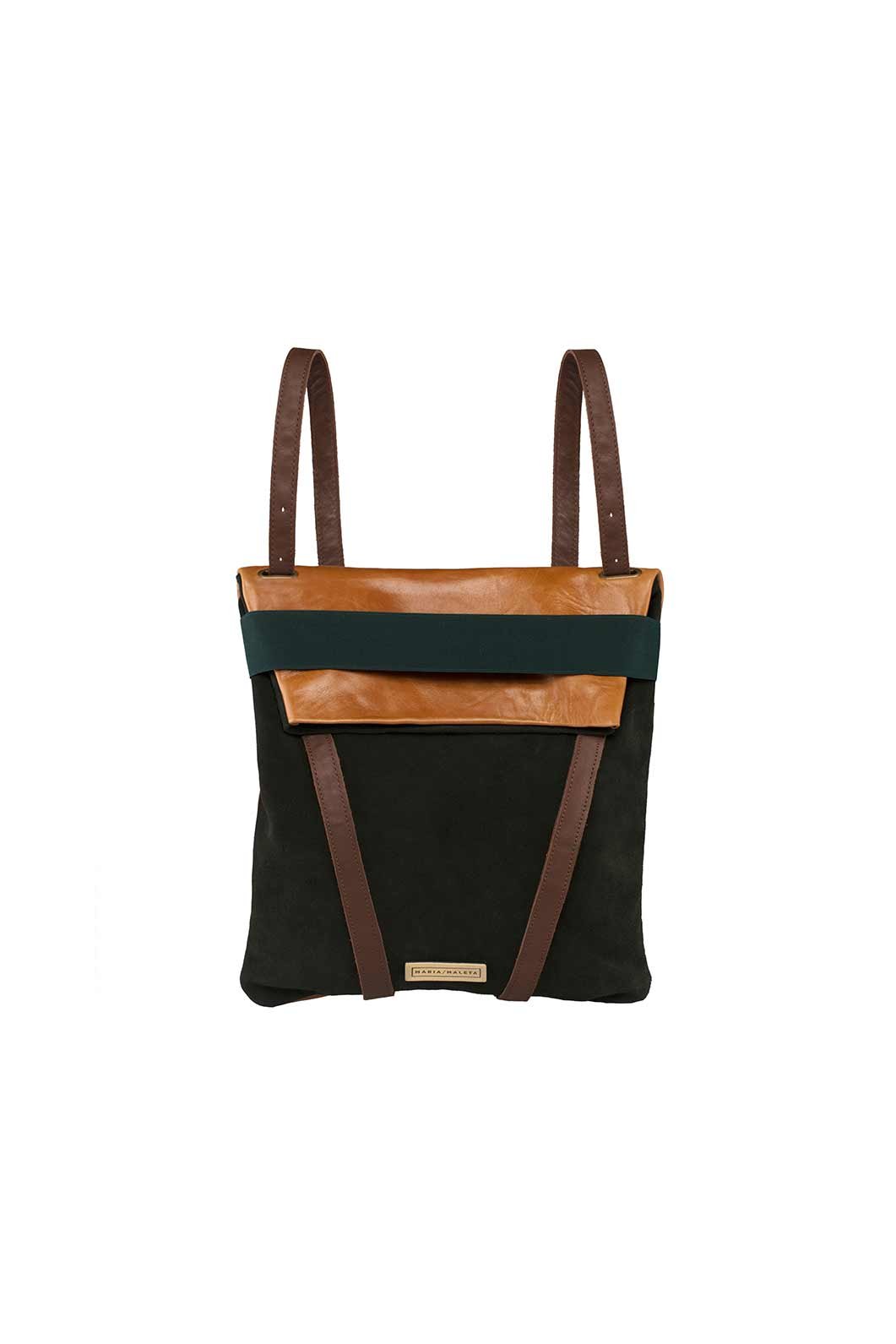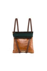 Women’s backpack in leather. Reversible backpack. Dark green suede in one side. Back in camel leather. Dark green elastic. and adjustable straps 70cm – 80cm. Two inner pockets. Dimensions: 35×33 cm. With an extra handle strap. REF. MMVSBPS Made in Portugal