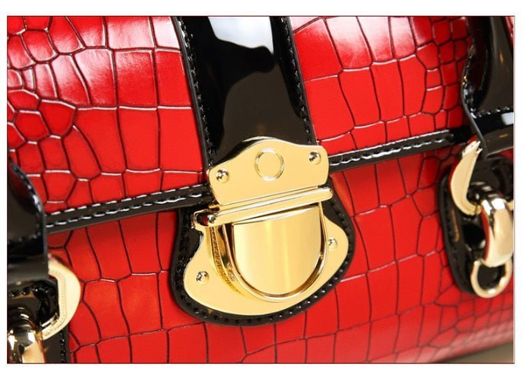 Update your handbag collection this season with this statement bright piece. this bag features two round top handles. a top zip fastening. and gold-tone lock. and crocodile-effect leather. which added an elegant and romantic touch. touch. This tote bag is giving you everything you never knew you desired so deeply.Â