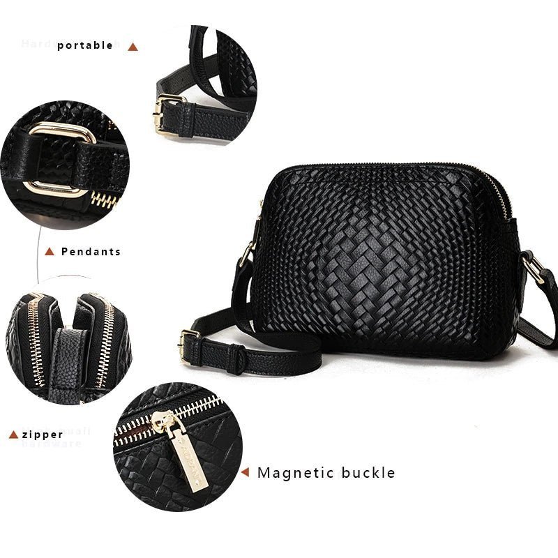 Elevate your daily style with our Knitted Series Genuine Leather Woman Shoulder Bag. This crossbody luxury accessory boasts a sophisticated design. featuring exquisite cowhide weaving for a touch of timeless elegance. Perfect for your daily essentials. this purse seamlessly combines fashion and functionality. Step into a world of refined taste with this must-have addition to your collection. where quality craftsmanship meets everyday luxury.